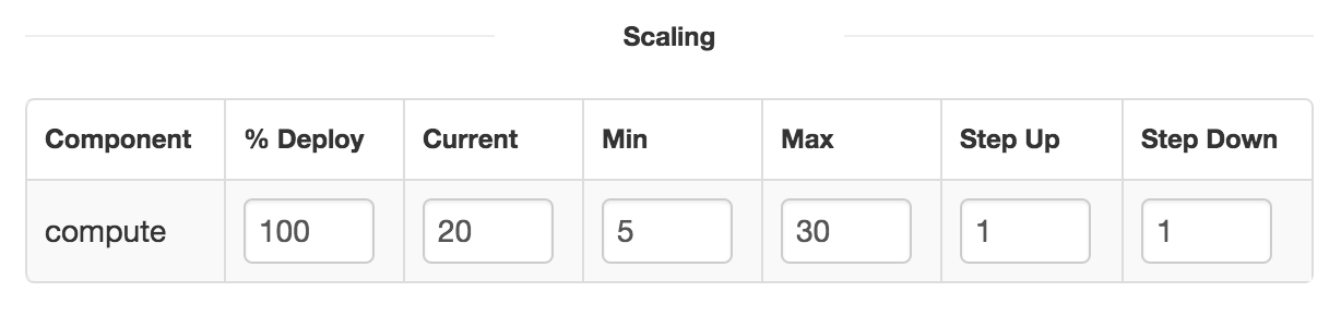 - Max: Maximum number of computes that can be added to the platform. Flexing up will stop once the maximum number of instances has reached its limit