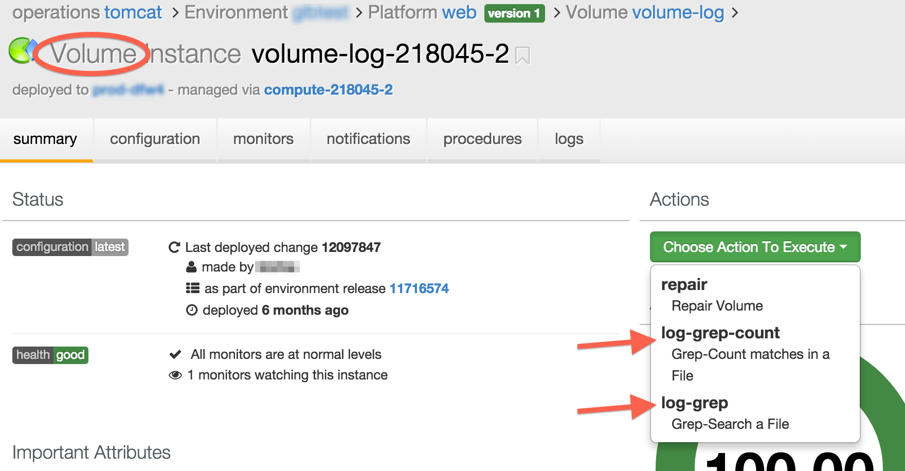 Uniphy has a couple of actions available on “Volume” components to help text-search one or multiple files on a compute.