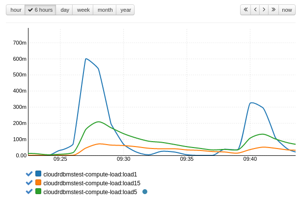 Time range control: The top left corner contains a control with buttons to select time range for the whole chart displaying of one hour, six hours, one day, one week, one month or one year.
